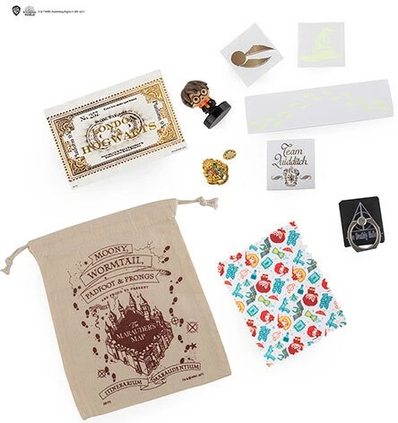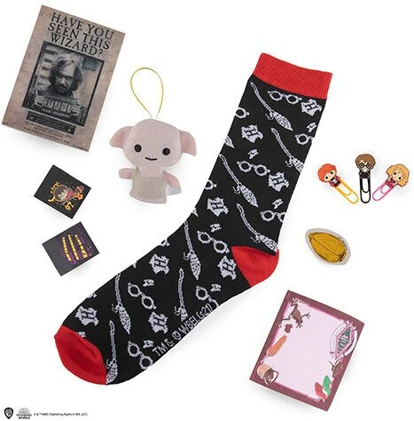 Calendrier de l’avent composé de 24 produits dont certains inédits :- Porte-clé peluche- Sac Totebag- Badge – Blasons- Collier cicatrice éclair- Autocollants pour téléphone- Ruban adhésif- Tatouages- Post-it- Tampons pour enfant- Porte-clé – Bloc notes- Mini surligneurs- Pince à clips- Support Pop socket- AutocollantsLe calendrier de l’avent Christmas in the Wizarding World 2021 mesure 24,5 x 33 x 5 cm