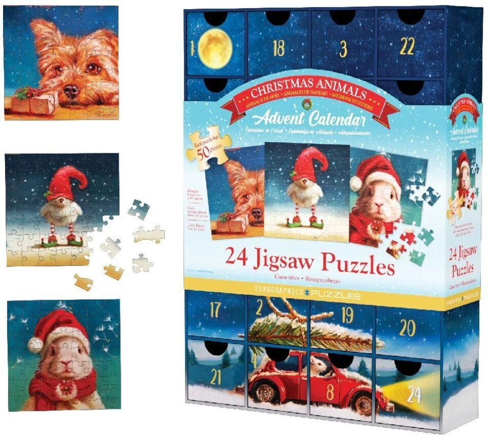 Für jeden Adventstag ein 50-Teile Puzzle. Qualitätspuzzles mit festem Blaukarton. Jedes Puzzle ist 12.5 x 12.5 cm gross. Es ist ein täglicher, kurzweiliger Puzzlespass für alle Familienmitglieder. 1200 Puzzleteile die man jedes Jahr auf’s Neue zusammenbauen kann.